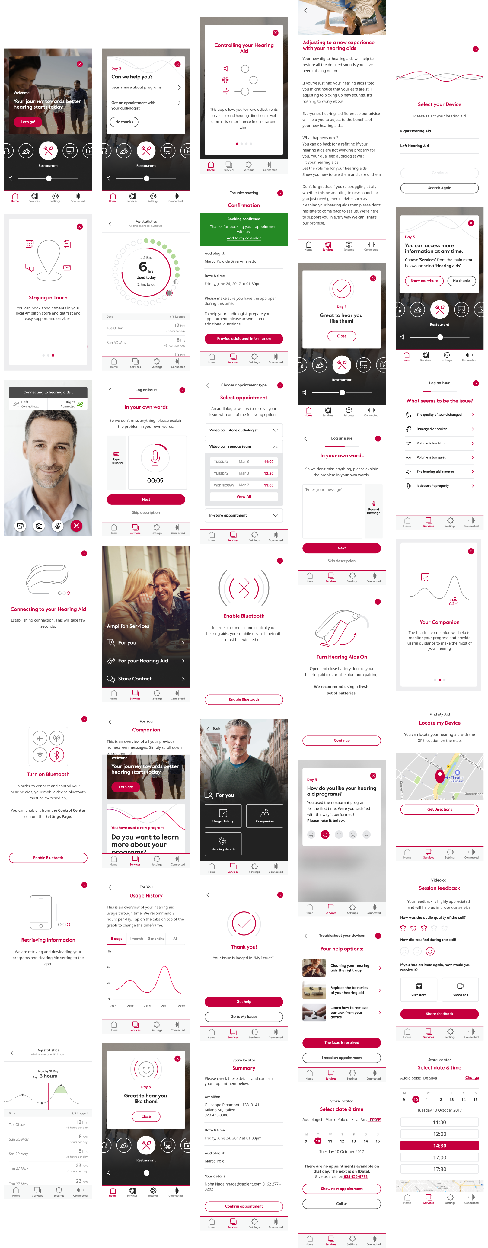 We started with deep research and workshops with Amplifon’s teams and customers to map journeys across touchpoints. The concept phase focused on clear user flows for booking, remote support, and device management. We translated this into detailed wireframes and prototypes for both platforms, ensuring they work smoothly together and reflect Amplifon’s trusted brand.